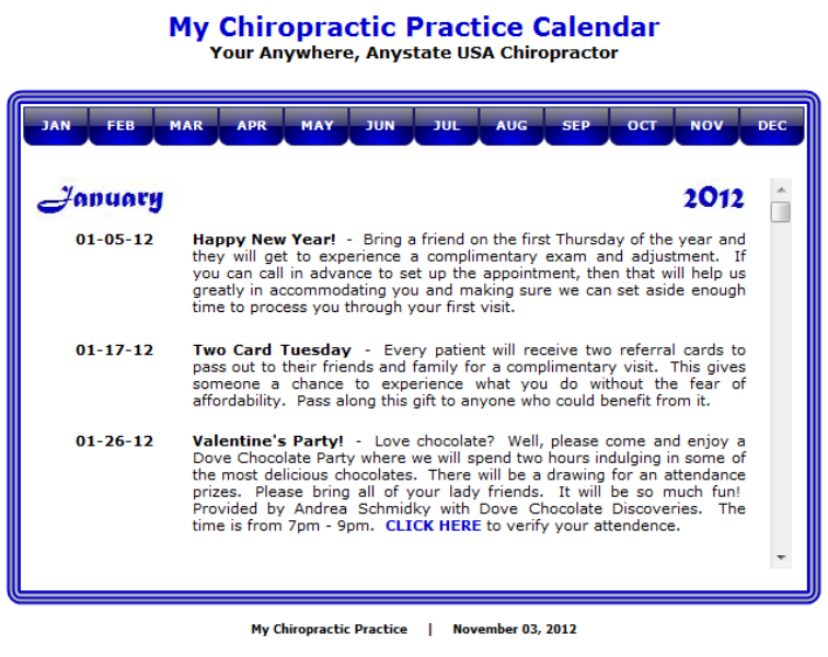 Would you like to have a better connection between your company and your clients? Do you want to increase your new customer activity? One way to do both is to include a Business Event Calendar within your website. By doing so, you will keep clients and potential clients up-to-date on your activities; such as special business hours, group activities, seminars and ongoing events. We know that having an event calendar can be a great resource for your business or organization, and to this end, we have designed two (2) business event calendar packages that you can choose from: